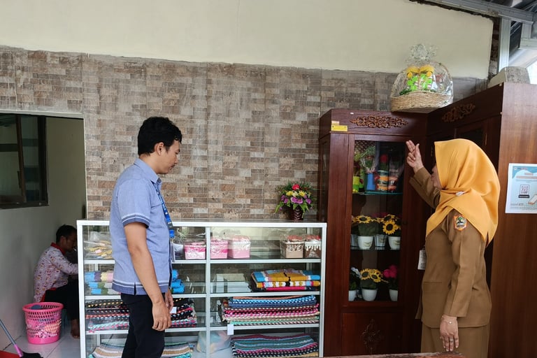 Display Produk Penerima Manfaat pada bagian depan Ruangan Keterampilan
